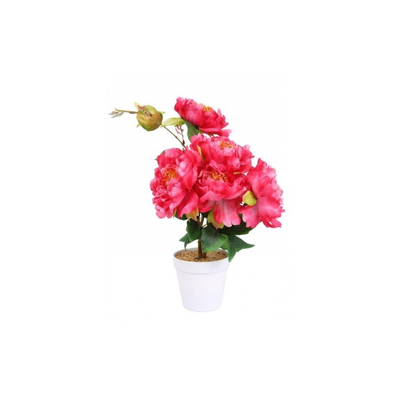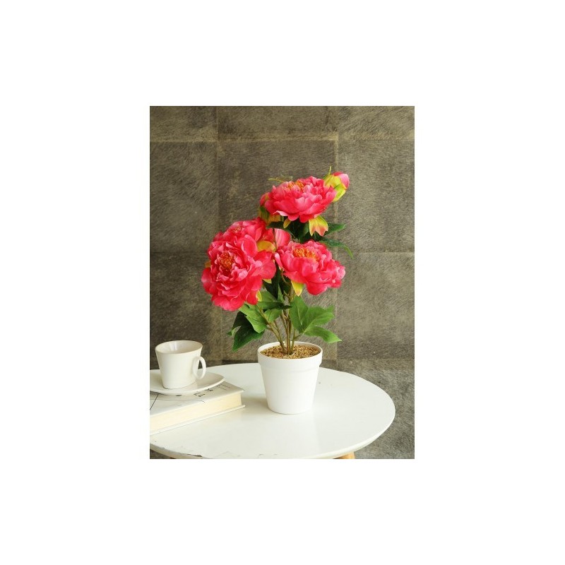 Enhance the furniture of your living room with the lovely Pink Peony Flower Plant today. This artificial flower seems to replicate the natural form of real peonies, giving a floral decoration that can never wilt and, hence, needs no attention. It consists of one fake plant of peony bloom in a small white plastic container with 38. 1 cm x 8. 8 cm.