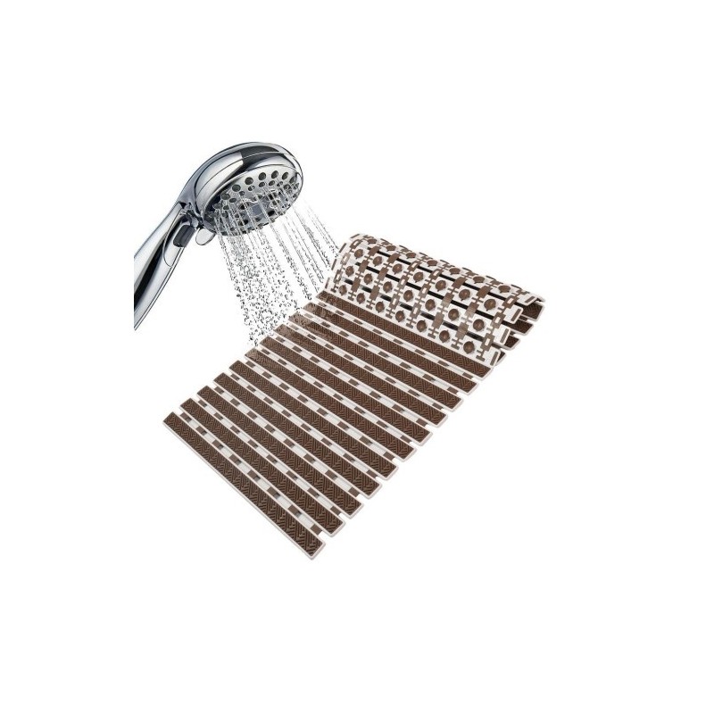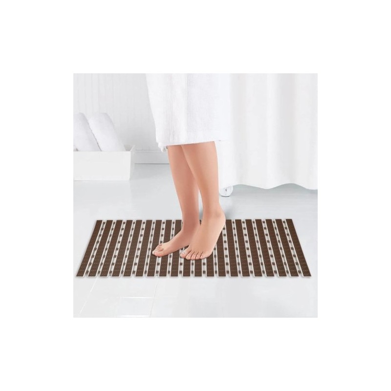 This durable brown rectangular mat is made of polyvinyl chloride. It is 70 x 40 cm and intended to blend in with almost all shower zones and bathtubs. Thus, it combines comfort and safety and will transform your bath zone.