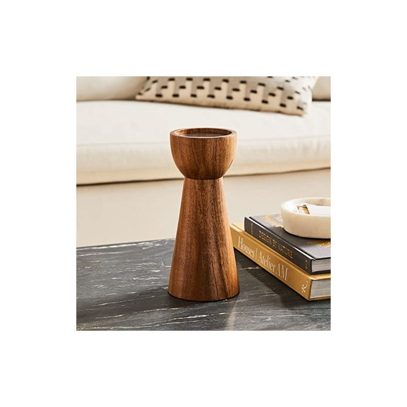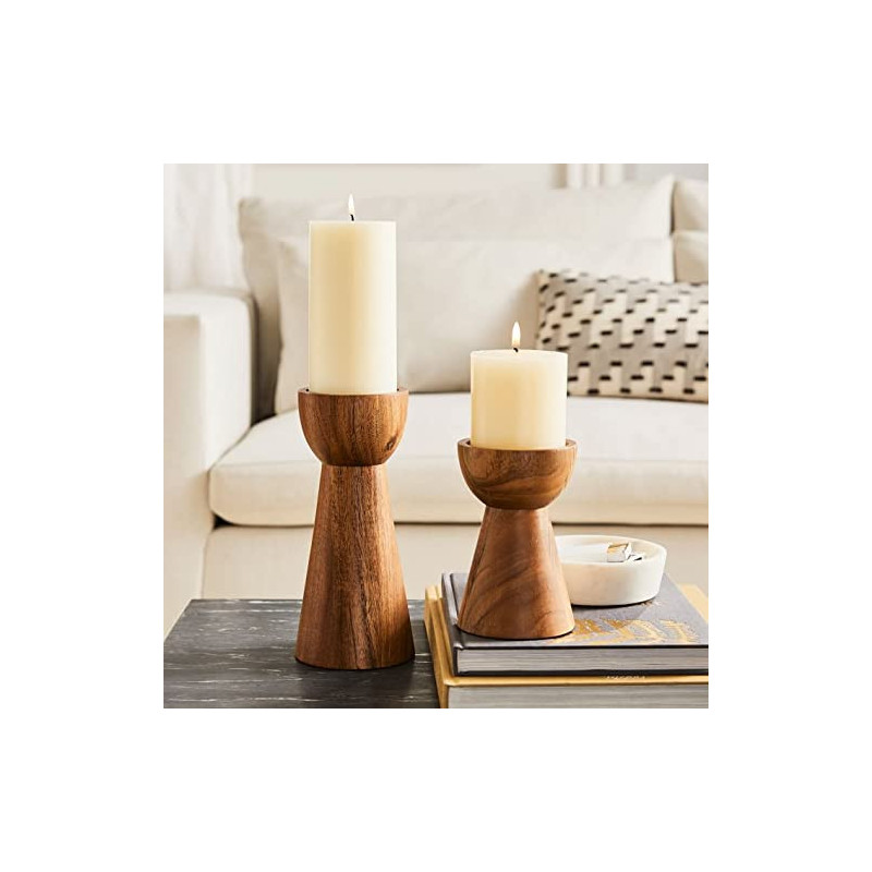 Each pillar candle holder is handcrafted and finished by artisans from sustainably sourced wood