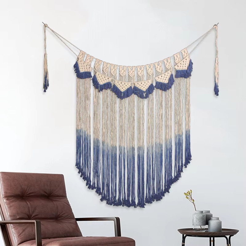 The Macrame Tapestry Wall Hanging features a bohemian chic design as an exquisite addition that delivers sophisticated beauty to interior spaces. This handcrafted tapestry represents meticulous detailing through weaving methods, which makes it appropriate for enhancing your living space's style. The macrame tapestry works as a beautiful wall decoration to enhance the aesthetic feeling of bedrooms along with living rooms and sofa areas within your home.