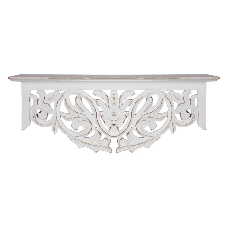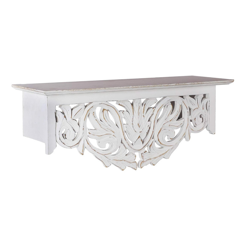 Elevate your items in class! Intricately carved and floral patterned , this solid shelf is perfect for warming up any space in the house - in the kitchen, around the bathroom vanity, in the living room, etc. Works great in sets or standing alone.