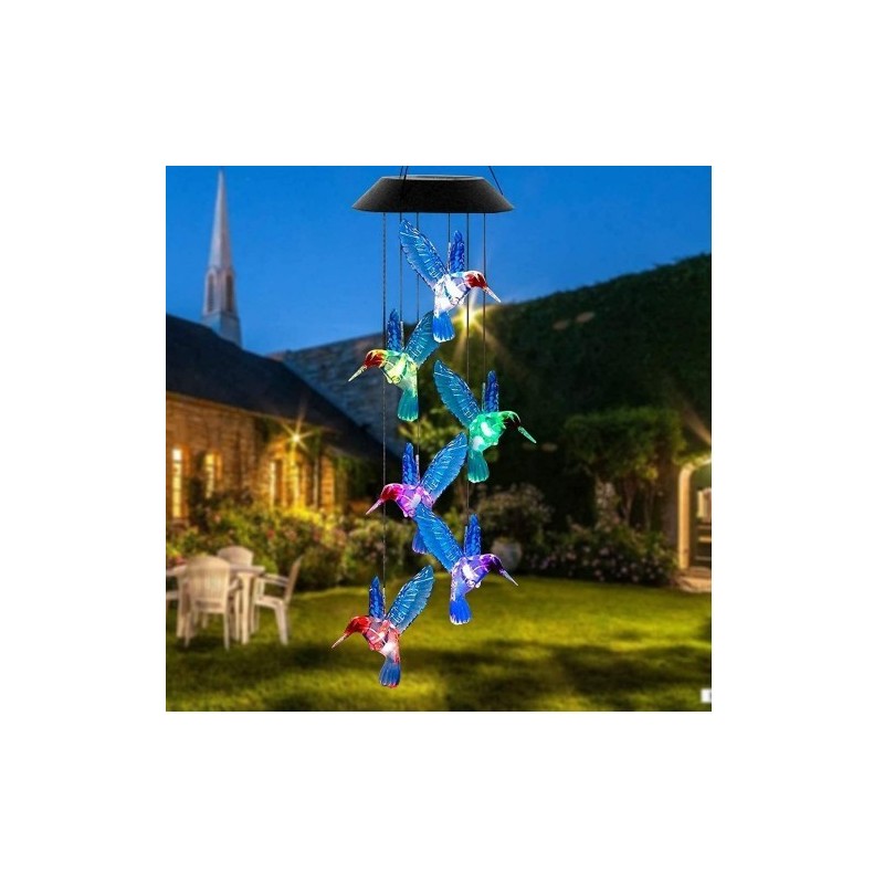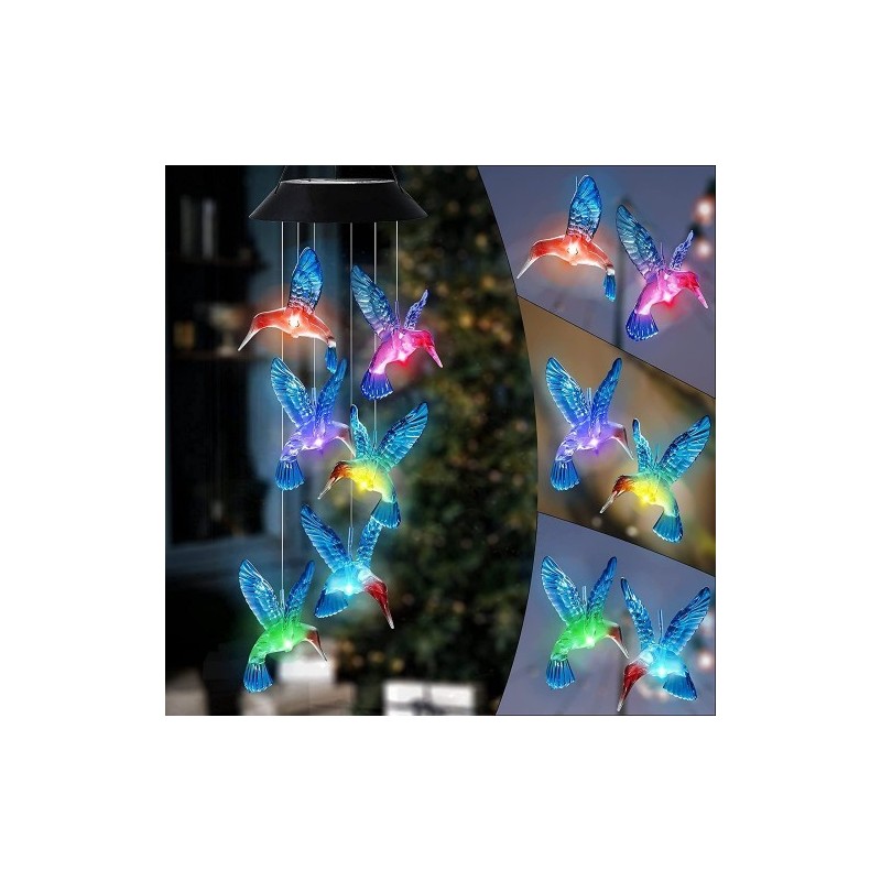 MULTI COLOUR CHANGING CHIME : Changing colors alternating randomly, these shine and colorful hummingbirds fly in the night. They will change various kinds of brilliant colors to light up your heart, pleasure you and your family.