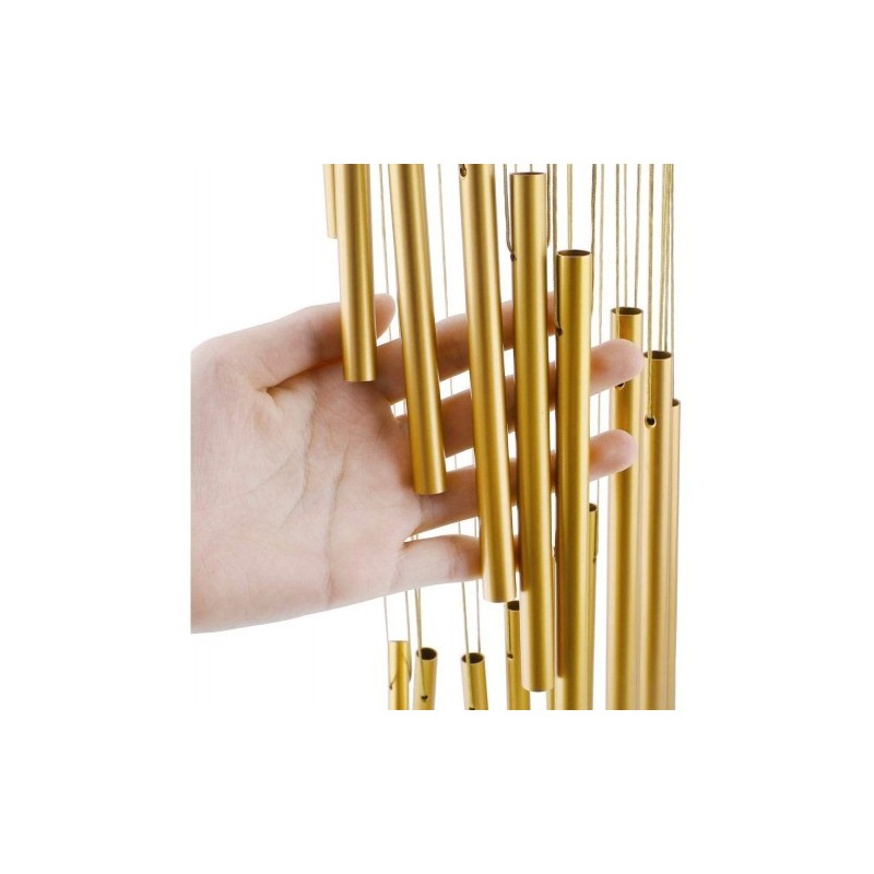 Specification of the large wind chimes: Size: 35” Tube length: 4.13 - 10.83 inch Tube diameter: 0.39inch Material: Aluminum tubes, Beech wood, Nylon braided cord