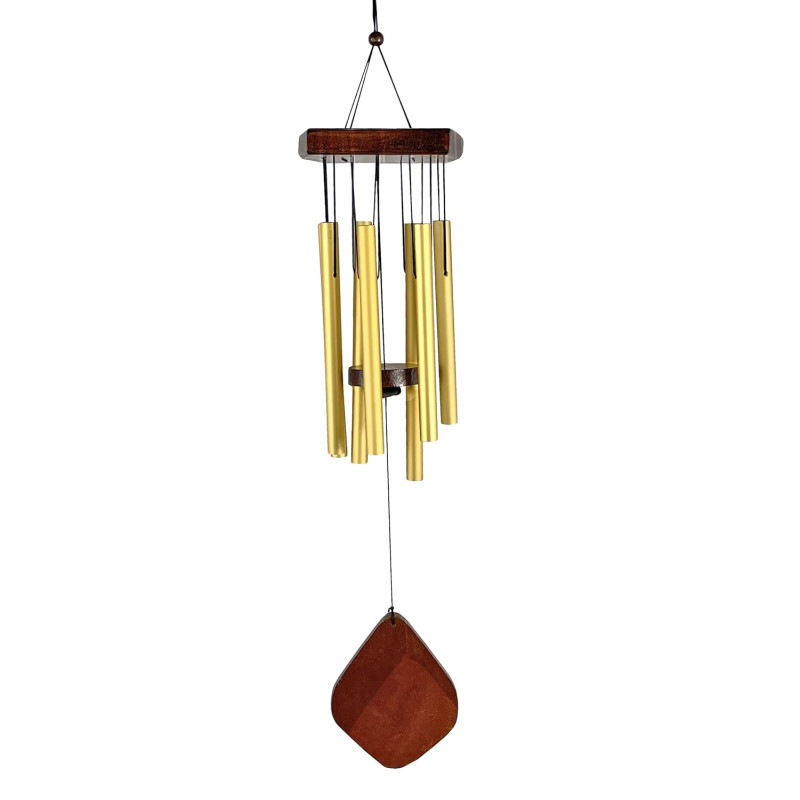The long, straight lines of the pipes with weatherproof coat compliment the soft round curves of the wood to offer a classy, traditional look. Secured with high strength suspension cord, they hang from a solid S-hook.